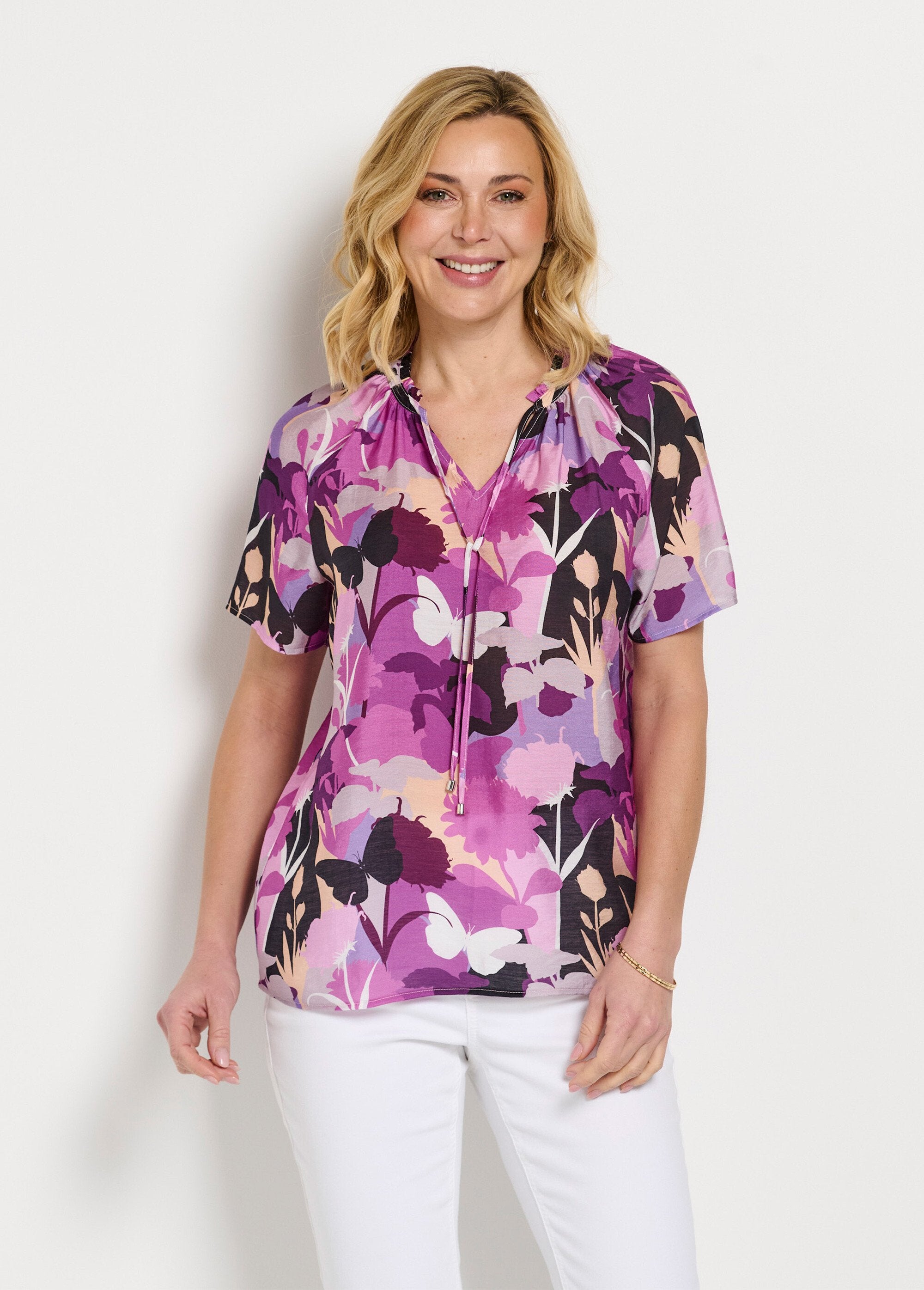 Blusa_de_manga_corta_con_cuello_en_V_y_estampado_de_plantas_Multicolor_FA1_slim Blusa_de_manga_corta_con_cuello_en_V_y_estampado_de_plantas_Multicolor_DO1_slim