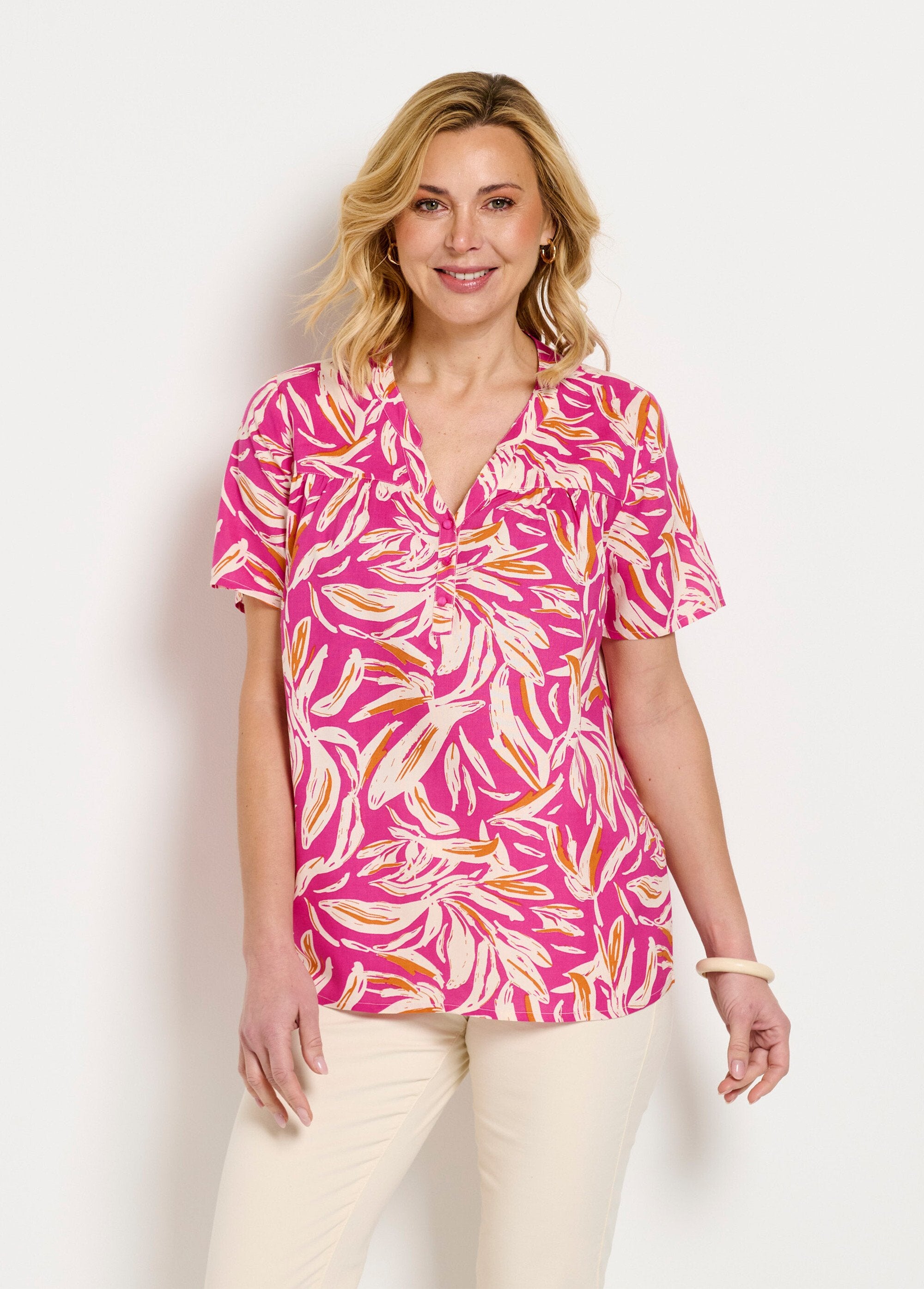 Túnica_holgada_con_cuello_en_V_y_botones_estampados_Rosa_y_blanco_FA1_slim Túnica_holgada_con_cuello_en_V_y_botones_estampados_Rosa_y_blanco_DO1_slim